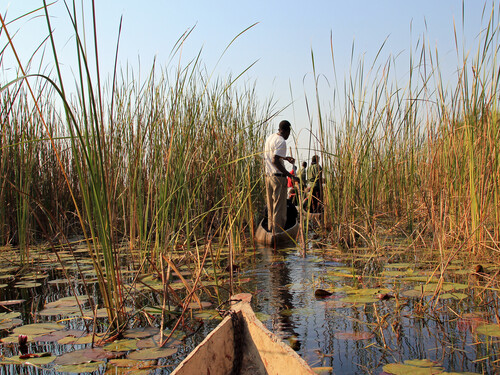 Slow down and travel with us at the speed of a dugout canoe poled by a local who knows the waters here better than anyone. Apart from the chance to see elephants, hippos, crocs, and other wildlife, it's the most romantic way to soak up the silence and explore the Okavango Delta.